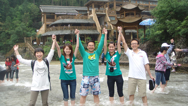 周六清早大家相约公司一同出发,经过约4小时的高速行程之后,大巴开始驶进蜿蜒崎岖的环山公路,青山碧水迎面而来,在些许的摇晃和眩晕当中,我们难掩兴奋之情,尽览窗外沿途的美景。汽车沿着山路盘旋了2个多小时,终于抵达目的地,大家迫不及待地投身于清幽僻静的大自然,赏味着眼前这蕴育浪漫气息和诗情画意的地方,身心也渐渐融入到这俊秀至美的重峦叠嶂当中。