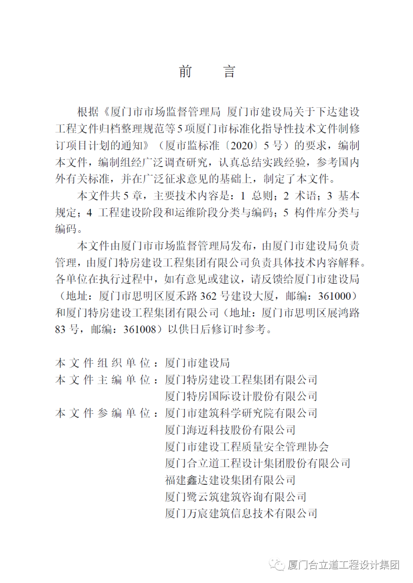 合立道设计集团参编的《建筑信息模型(BIM)分类与编码导则》已获批准正式发布施行! 【发布时间:2022-03-27】 【浏览次数:17451次】 【字体:大 中 小】 【颜色:红 绿 蓝 黑】 合立道设计集团参与起草编制的厦门市标准化指导性技术文件《建筑信息模型(BIM)分类与编码导则(DB3502/Z 5062-2021)》经厦门市市场监督管理局与厦门市建设局组织审查,已获批准正式发布施行。公司流程与信息化部副总经理黄江怀、BIM技术应用中心副主任蒋华辉参与此次起草编写工作。 【上一条】:合立道协办丨2025年福建省工程建设信息化学术年会在合立道大厦圆满举办!【下一条】:中国工程建设标准化协会“置换砂浆”规程工作会议在合立道设计集团顺利召开