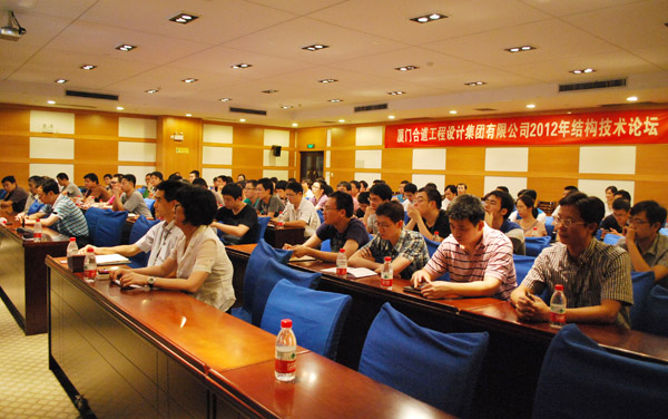 2012年8月10日在厦门科技大厦报告厅,厦门合道工程设计集团有限公司隆重举办了2012年结构技术论坛。会议总结了近年来我司超限复杂高层、大跨度钢结构公建等项目的设计先进经验,展示了近期公司内部课题中间成果,体现了厦门合道团队设计水平在整体提高。