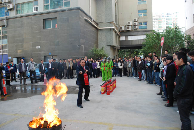 12月17日下午3:30,新乐大厦1至7楼的消防广播、消防声光报警器等消防联动设备发出警报声响,公司全体员工在各部门、各楼层消防安全负责人的组织引导下,按照预案中确定的疏散路线迅速而有序地撤离到安全地带(大楼后广场西侧的集合地点)。随后,新乐大厦物业管理服务中心的人员在集合地点为大家分析了消防安全的重要性,详细讲解了灭火器的使用方法和技巧,并安排人员现场演示,各部门员工积极参与了灭火器的实际操作演练。