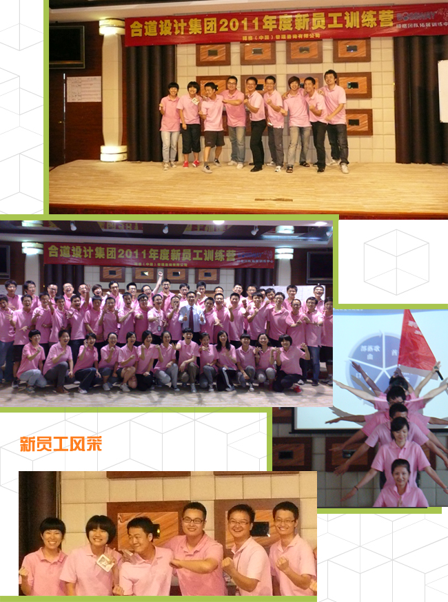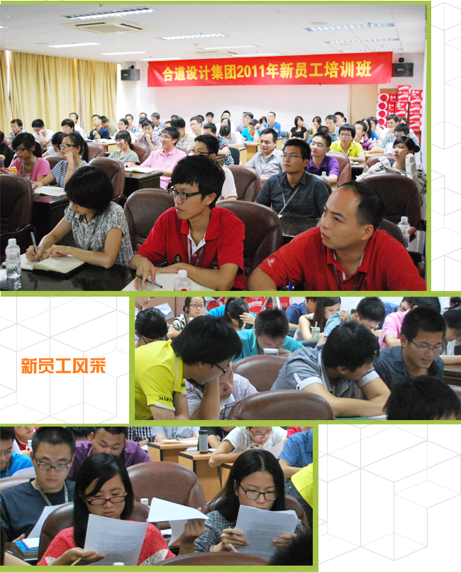由于2011年加盟合道设计集团的新员工较多(合计130人),本次新员工培训采取对通识类课程分批次、技术类课程分专业的方式进行。培训课程内容设计紧紧围绕公司的企业文化、管理制度、业务流程、行业特性介绍等入职培训之必修内容展开,同时融入了团队拓展训练的体验式学习课程、职业化的养成与塑造、职业生涯规划等管理类课程,将理论课程与实践课程有机结合,不仅帮助新员工更好地熟悉工作环境,融入工作团队,更为他们建立起一个有效的沟通平台,为他们在合道设计集团全新的职业生涯创造了良好的开端。