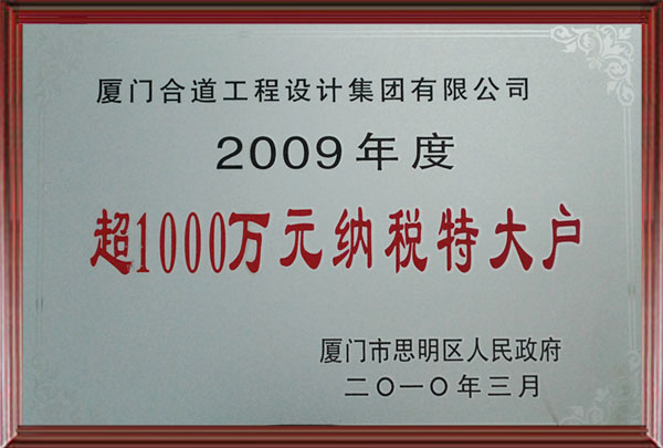我司被评为“思明区2009年度超1000万元纳税特大户” 【发布时间:2010-03-24】 【浏览次数:14409次】 【字体:大 中 小】 【颜色:红 绿 蓝 黑】 我司坚持合法经营、诚信纳税,被厦门市思明区人民政府授予“2009年度超1000万元纳税特大户”荣誉称号。自2003年改制成立公司以来,我司已连续6年被思明区政府评为纳税大户或纳税特大户,为思明区经济的发展积极献力。 (附:图) 【上一条】:合立道协办丨2025年福建省工程建设信息化学术年会在合立道大厦圆满举办!【下一条】:为设计师搭建成长平台——厦门日报专访我司董事长兼总经理张惠莲