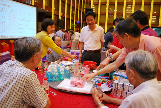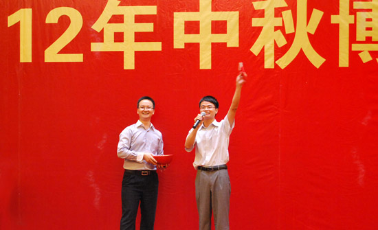 “2012中秋博饼联欢活动”在张惠莲董事长的致辞中正式拉开序幕,活动上半场是大家期待已久的闽南风俗 “中秋博饼”,激烈的状元争夺战和“王中王”的PK环节,全场爆发出阵阵惊喜声、惊叹声、惋惜声,此起彼伏,最后在大家收获的喜悦中“博饼活动”暂告一段落;下半场的晚宴更是精彩纷呈,不仅有美酒佳肴,还上演了“现金大派送”的现场互动活动,有趣的表演、诱人的奖金,引起在场各位的热烈反响,现场高潮迭起、笑声不断,灯光、美酒与员工们喜气洋洋的笑脸交相辉印,给“合道中秋之夜”留下一幕幕美好的回忆。