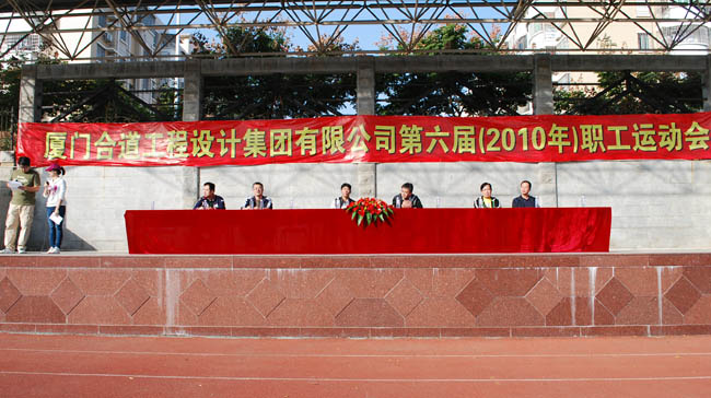 12月4日上午,厦门合道工程设计集团有限公司第六届暨2010年职工运动会在厦门东渡六中体育场隆重举行!公司及下属的竹生馆地产顾问公司共计400余人出席开幕式,约220名参赛选手齐聚一堂,斗志昂扬,尽显赛场英姿,展示合道员工风采!