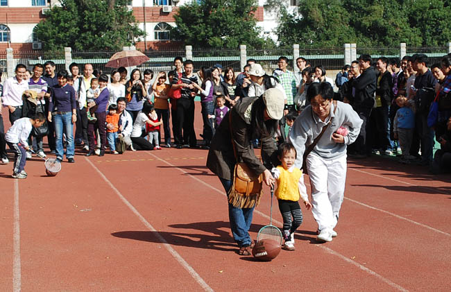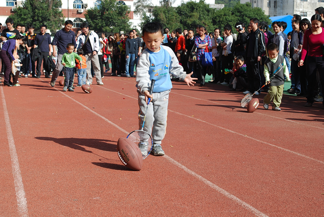 本届运动会共设置了6个团体赛项目:趣味射门、折返跑接力、跳远接力、拔河、单人跳绳、跳跳球接力;以及2个家庭亲子项目:滚橄榄球、30米接力。所有参赛人员组成了八个代表队参加了运动会的各项赛事。运动会宣布开始后,各组裁判员便以饱满的热情和严谨的态度投入各项比赛的进程安排及秩序管理当中,运动员们更是极尽所能一显身手,大家在热烈、文明、团结、奋进的气氛中展开竞技,整个运动场内生龙活虎,团体赛事精彩纷呈。尤其引人关注的是亲子项目,孩子们的天真无邪以及父母与孩子共同参与活动的热情,感染了现场的所有人员,整个赛场充满了欢声笑语。