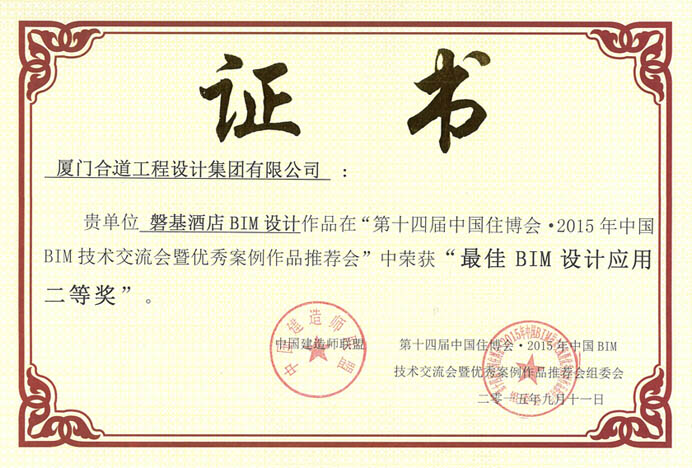 热烈祝贺我司“磐基酒店BIM设计作品”荣获中国勘察设计协会2015年创新杯建筑信息模型(BIM)设计大赛“最佳BIM普及应用奖”、第十四届中国住博会2015年中国BIM技术交流会“最佳BIM设计应用二等奖”。