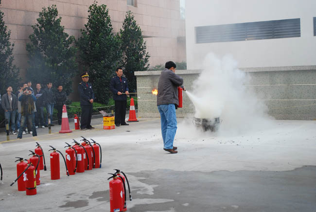 12月17日下午3:30,新乐大厦1至7楼的消防广播、消防声光报警器等消防联动设备发出警报声响,公司全体员工在各部门、各楼层消防安全负责人的组织引导下,按照预案中确定的疏散路线迅速而有序地撤离到安全地带(大楼后广场西侧的集合地点)。随后,新乐大厦物业管理服务中心的人员在集合地点为大家分析了消防安全的重要性,详细讲解了灭火器的使用方法和技巧,并安排人员现场演示,各部门员工积极参与了灭火器的实际操作演练。