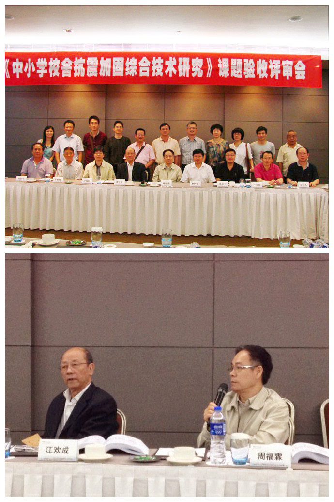 2012年5月16日上午,厦门市建设与管理局在厦门市组织召开了“中小学校舍抗震加固综合技术研究”课题验收评审会。课题组聘请了中国工程院院士周福霖教授担任课题验收评审委员会主任委员、中国工程院院士江欢成教授担任副主任委员。