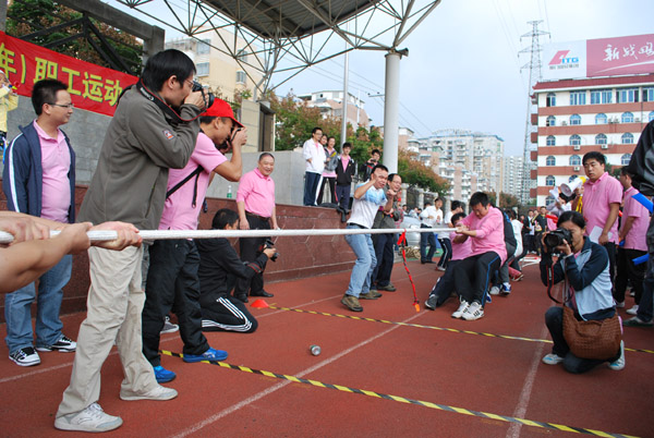 运动会在公司总经理曾志泓亲切热情的开幕辞及运动员代表、裁判员代表的郑重宣誓后正式拉开序幕。本届比赛特设6项团体项目:一圈到底、射门、水球炮弹、拔河、集体跳绳、10*60米折返接力赛跑,2项亲子项目:幸福拼图、神射手,所有参赛部门分为8组进行比赛。赛场上选手全力以赴、斗志昂扬,裁判员全神贯注、严谨尽责;赛场旁拉拉队员加油助威、热情饱满,备战运动员积极练习、相互鼓励……紧张刺激的团体项目、妙趣无穷的亲子游戏,让整个赛场充满了体育竞技的欢乐。