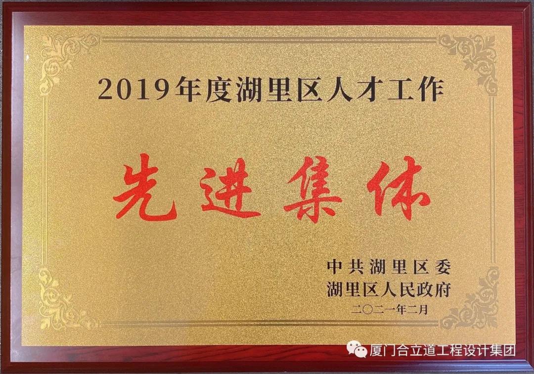喜报!合立道设计集团获评“湖里区人才工作先进集体”! 【发布时间:2021-04-07】 【浏览次数:13041次】 【字体:大 中 小】 【颜色:红 绿 蓝 黑】 4月初,合立道设计集团参加湖里区委组织部组织召开的“湖里区优秀人才、人才工作先进个人和先进集体表彰座谈会”,并接受了湖里区委常委、组织部部长、二级巡视员胡鹏程部长颁发的“湖里区人才工作先进集体”荣誉牌匾! 【上一条】:合立道协办丨2025年福建省工程建设信息化学术年会在合立道大厦圆满举办!【下一条】:合立道设计集团再次获评厦门市龙头骨干民营企业!