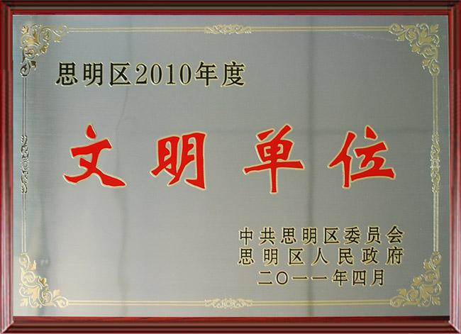 热烈祝贺我司荣获“思明区2010年度文明单位”称号 【发布时间:2011-06-13】 【浏览次数:13810次】 【字体:大 中 小】 【颜色:红 绿 蓝 黑】 为表彰我司积极参与2010年度精神文明创建活动并取得明显成效,思明区委、区政府特授予我司“2010年度文明单位”称号。 【上一条】:合立道协办丨2025年福建省工程建设信息化学术年会在合立道大厦圆满举办!【下一条】:厦门机场将现“大鹏展翅”