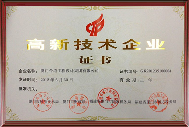 热烈祝贺我司被认定为“厦门市高新技术企业” 【发布时间:2012-11-22】 【浏览次数:16937次】 【字体:大 中 小】 【颜色:红 绿 蓝 黑】 经厦门市科技局、市财政局、市国税局、市地税局联合发文,我司(厦门合道工程设计集团有限公司)被认定为“厦门市2012年第一批(总第十四批)高新技术企业”。 附:《关于认定厦门市2012年第一批(总第十四批)高新技术企业的通知》 【上一条】:合立道协办丨2025年福建省工程建设信息化学术年会在合立道大厦圆满举办!【下一条】:合道设计集团举办金秋专场音乐会